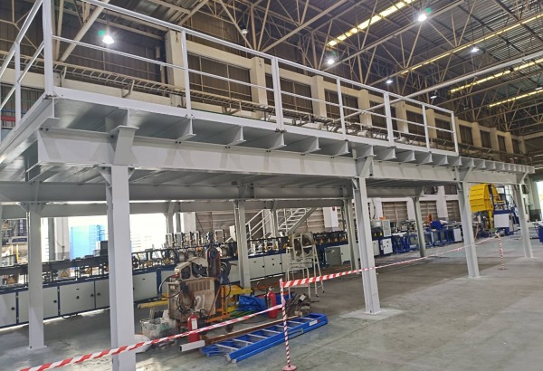 Industrial mezzanine or knock-down mezzanine It is a beneficial use of space in the air. With another level of floor structure to increase the usable space of the warehouse, storehouse, or space for storing various products.  Mezzanine installation Can be done without adding an additional building. Help reduce costs and get more usable space or storage for products